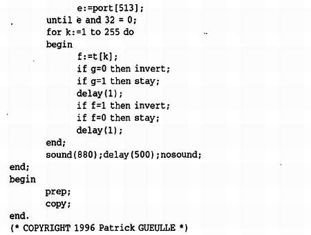 При изготовлении карты синхронизации управлять кодером можно с помощью программы MAKESYNC.PAS, при создании которой для получения требуемой скорости управления записывающей головкой был использован Turbo Pascal.