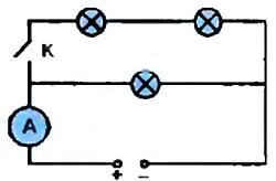 4. (9, 10) Лампы и амперметр включены так, как показано на рисунке.