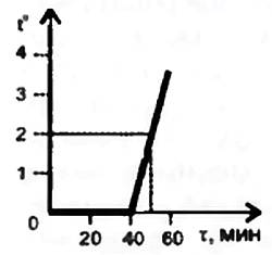 5. (9, 10, 11) Ведро, в котором находится смесь воды со льдом массой 10 кг, внесли в комнату и сразу же начали измерять температуру смеси. Получившийся график зависимости температуры t° от времени ? изображен на рисунке.