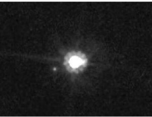 Рис. 7.6. Слева: наилучшее изображение Квавара, собранное из 16 снимков, полученных в 2002 г. космическим телескопом «Хаббл». Справа: Эрида и ее спутник Дисномия (внизу слева) размером порядка 100 км. Спутник движется вокруг Эриды по круговой орбите радиусом 36400 км с периодом 15,77 сут. Фото: HST NASA