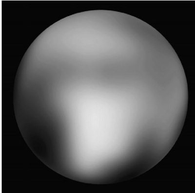 Рис. 7.7. Наиболее четкое изображение Плутона, полученное по снимкам космического телескопа «Хаббл». Пока трудно судить, что представляют собой эти пятна на поверхности. Загадочное яркое пятно в центре, судя по цвету, покрыто замерзшей окисью углерода. Детали поверхности Плутона мы увидим в 2015 г., когда к нему приблизится зонд «New Horizons» (NASA).