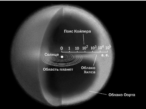 Однако пояс Койпера, рассеянный диск и группа обособленных объектов с большими перигелиями (detached objects) – это еще не последние рубежи Солнечной системы. Далеко за ними на основе изучения комет предполагается существование объектов облака Хилса (Hills cloud objects) и еще более далеких объектов облака Оорта (Oort cloud objects), о которых почти ничего не известно. Так что для разведчиков далеких планет еще осталось много белых пятен даже в пределах нашей родной Солнечной системы.