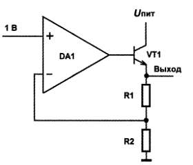 Вместо всей этой конструкции, конечно, можно поставить небольшую микросхему — источник опорного напряжения или просто любой стабилизатор из серии LM, только сопротивление R1 придется пересчитать так, чтобы в среднем положении движка R2 на нем сохранилось около 1 В. Потенциометром этим можно плавно менять всю шкалу напряжений на выходе (но до определенного предела, ограниченного как снизу, так и сверху). Разумеется, эту цепочку вполне можно заменить двумя постоянными резисторами.