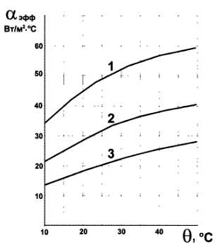 □ αэфф — эффективный коэффициент теплоотдачи, Вт/м2·°С (см. график на рис. 9.15);