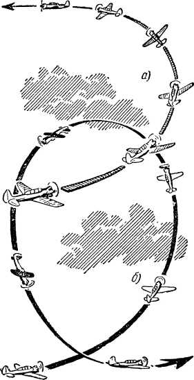 Рис. 30. Фигурный полет самолета: а) боевой разворот, б) петля Нестерова.