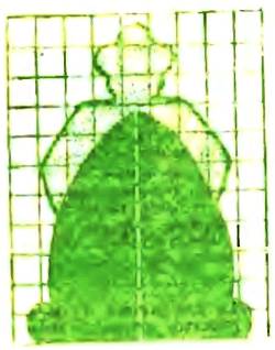 На листе папиросной бумаги проведите клеем 4 линии (рис. 1), на втором листе — 5 линий; на следующем снова 4 линии. Подклейте так 30–40 листов. Когда клей подсохнет, вырежьте по выкройке половинки шубы (рис. 2) и наклейте их на Деда Мороза с обеих сторон (рис. 3).