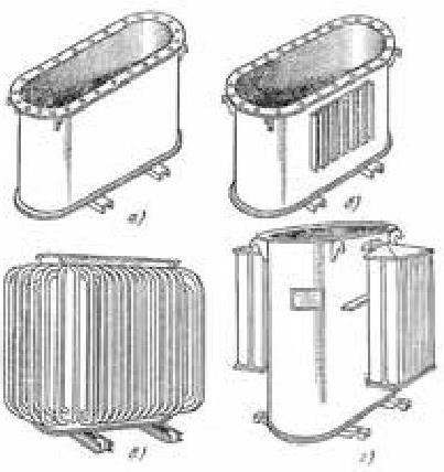а – гладкий, б – ребристый, в – трубчатый, г – радиаторный.