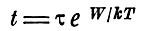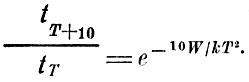 (Напоминаю, что t это время ожидания для устойчивые мутации с порогом энергии W). Мы спрашиваем: как будет изменяться в зависимости от температуры . Из предыдущей формулы мы легко находим с хорошим приближением отношение значения t при температуре T+10 к значению t при температуре Т