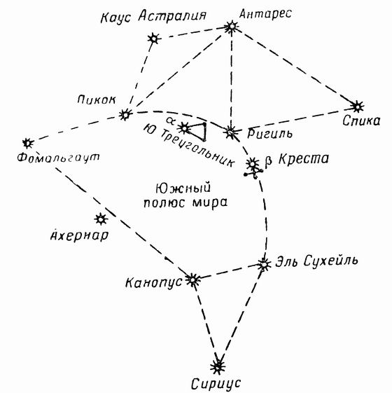 Рис. 21. Схема отыскания звезд на южном звездном небе