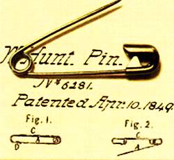Этот вид булавки почему-то называют английской, хотя правильнее было бы назвать ее американской, поскольку ее изобретатель Уолтер Хант был, что называется, стопроцентным американцем. Он родился в 1796 году в городке Мартинсбурге, штат Нью-Йорк. Здесь же он и учился вместе со своими 12 братьями и сестрами.
