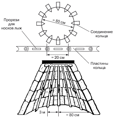 Рис. 7.7. Укрытие с каркасом из лыж, соединенных металлическим кольцом
