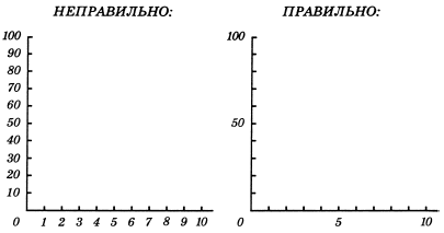 2. Вдоль осей координат должно быть от трех до пяти числовых обозначений (для остальных достаточно пустых меток на оси) – см. рис. 14.