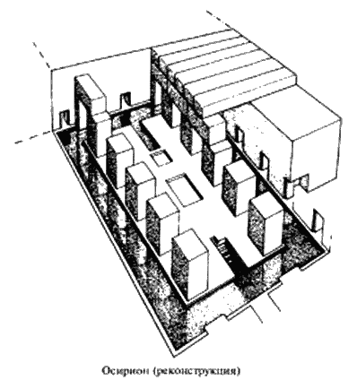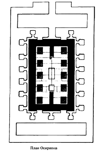 Чтобы лучше понять устройство Осириона, я попытался мысленно подняться над ним и посмотреть сверху. Это облегчается отсутствием крыши, так что общая планировка становится более понятной… Помогало и то, что, просачиваясь из грунта, вода заполнила все бассейны, ниши и каналы почти до краев цоколя, как, видимо, и планировали авторы проекта.