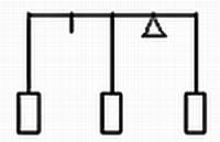 2. Рычаг с тремя грузами находится в равновесии. Масса правого груза 5 кг, левого — 1 кг. Найдите массу среднего груза, если массой остальных элементов конструкции можно пренебречь.