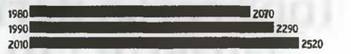 Если выбросы углекислого газа в атмосферу (главная причина парникового эффекта) в предстоящие 100 лет будут расти так же, как в прошлом, то следует рассчитывать на то, что средняя температура в мире возрастет на 1 -3,5 градусов, а уровень Мирового океана поднимется на 46 сантиметров. Это будет иметь ужасающие последствия: с ростом температуры леса во всем мире будут уступать место пустыням и степям. Площади возделывания зерновых будут смещаться к полюсам, производство зерна в целом сократится. Подъем уровня Мирового океана приведет к исчезновению, например, районов с повышенной влажностью. Вдоль густонаселенных прибрежных районов у растений и животных не будет альтернативного жизненного пространства.