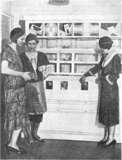 Но одной только продажей товаров деятельность торгующих автоматов не ограничивается. Некоторые из новейших автоматов продают энергию и оказывают услуги. К первому виду относится автомат, дающий щипцы для завивки волос, нагреваемые электричеством в течение нескольких минут, и газовый автомат, отпускающий определенное количество светильного газа.