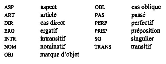 Dans (17a), la construction est la CBM, avec un premier actant ? l'ergatif repr?sentant un agent, un objet prototypique ? l'absolutif et un verbe morphologiquement marqu? comme transitif. Dans (17b), le verbe est morphologiquement intransitif, le premier actant est ? l'absolutif, et il y a en outre une sorte de quasi-objet ? l'absolutif ?galement.