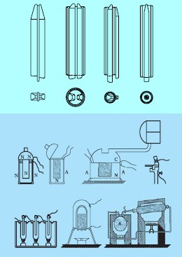 Чертежи П. Н. Яблочкова: электрическая свеча и гальванические элементы горения