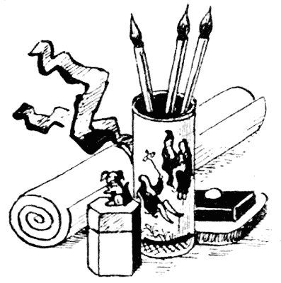Бумага была тонкая, шелковистая. Кисточки были сделаны из волос хвоста самой пушистой лисицы. Тушь лежала в зеленой нефритовой коробочке, обернутая в кусочек шелка. В ее черную матовую поверхность была вделана маленькая жемчужина в знак того, что это самая лучшая, самая черная, драгоценная китайская тушь.