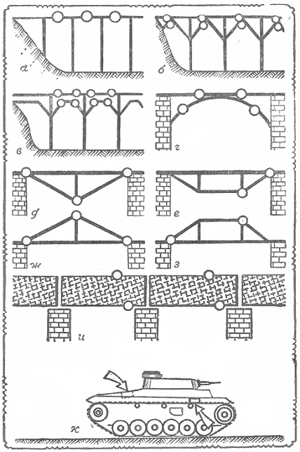 a, б, в, г, д, е, ж, з, и — заряды при подрывании мостов; к — как подрывают танк.