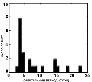 Некоторые группы орбит короткопериодических планет имеют пониженную или повышенную населенность по сравнению с остальными. Группирование по орбитальным периодам также неравномерно и почему-то наиболее заметно вблизи периодов 3-5 суток. На этот интервал приходится достаточно много планет, чтобы считать наблюдаемый максимум неслучайным.