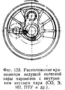 дения сторон; в ведущей же колесной паре правая и левая стороны имеют принципиальное отличие, заключающееся в расположении пальца контркривошипа по отношению к пальцу кривошипа.