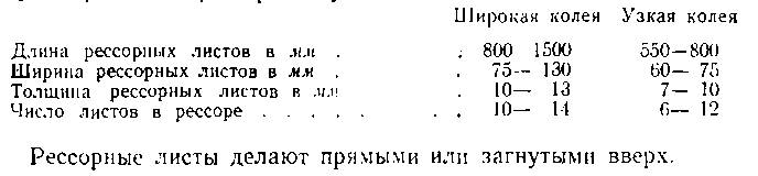 Для устранения бокового передвижения листов рессоры полосы снабжены посредине с одной стороны углублением, а с другой — полукруглым выступом. При сборке рессоры выступ одного листа входит в соответствующее углубление соседнего листа, вследствие чего листы не могут сместиться. Наиболее распространенные размеры паровозных рессор следующие: