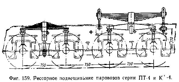 Рессорное подвешивание паровозов разных серий как широкой, так и узкой колеи различное (фиг. 157—159).