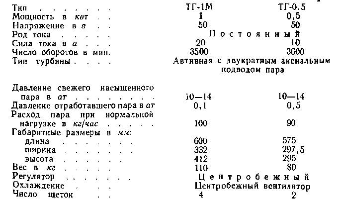 В зависимости от конструкции регулятора, являющегося до настоящего времени больным местом турбогенератора, различают турбогенераторы типа ТГ-1-50 и ТГ-1М. Турбогенераторы первого типа изготовляли до 1948 г., после чего начали изготовлять турбогенераторы типа ТГ-1М.