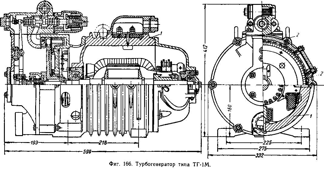 Для выработки электроэнергии на паровозе установлен турбогенератор типа ТГ-IM (фиг. 166).