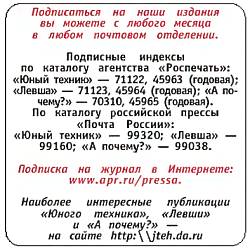 — Юные механики познакомятся с занимательной механической игрушкой, а любители головоломок узнают о новых задачах от Владимира Красноухова. Вы, конечно, найдете в номере радиоэлектронные схемы и полезные советы.