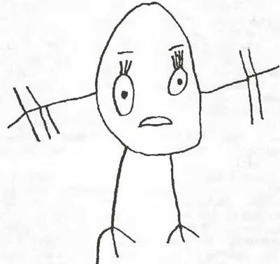 Дальше тело приобретает характерную яйцеобразную форму, и на нем появляются признаки одежды. Оно еще не одето по-настоящему: пуговицы, иногда пояс… Ну, и из этого всего растут ноги. Они точно так же приобретают постепенно телесность, как и руки. Последней приобретает телесность ступня, и это тоже характерно для развития самого тела: ребенок начинает ходить, и на этом этап первого освоения собственного тела заканчивается. И только после того как человечек собран полностью, до ступней, он, как и в случае с руками, готов двигаться. Теперь можно рисовать движение.