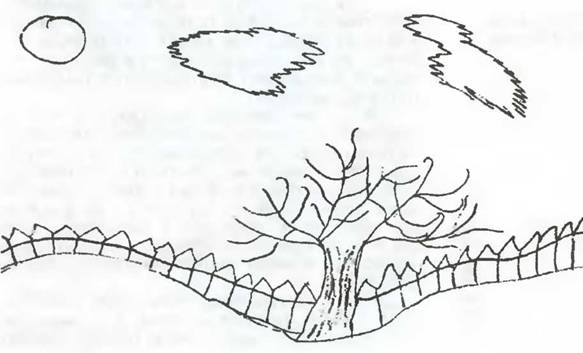 Рентгеновский рисунок должен уйти к семи годам. Из окружения человечка-огуречка складываются сюжетные картины. Но пока человек и окружающий мир не соотнесены друг с другом. Только взрослому придет в голову вопрос, как же такой большой человек помешается в таком маленьком доме; для ребенка такого вопроса нет. Пропорция – очень сложное открытие, потому что туг не только личный телесный опыт, но и словесный, такие категории усваиваются только через посредство языка. Ближе – дальше; ниже – выше; короче – длиннее: это связано уже не просто с переживанием и ощущением, а с пониманием.