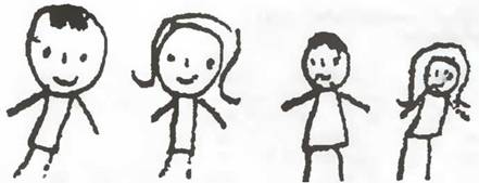 Абсолютно у всех детей первый герой предметного рисунка – человек. Более того, общее развитие ребенка идет по тем же законам, по которым развиваются спонтанные рисунки, – только потому они и стали инструментом психологических тестов. Образ человека, возникающий в них, отражает историю овладения собственным телом, которая происходила с самим ребенком.