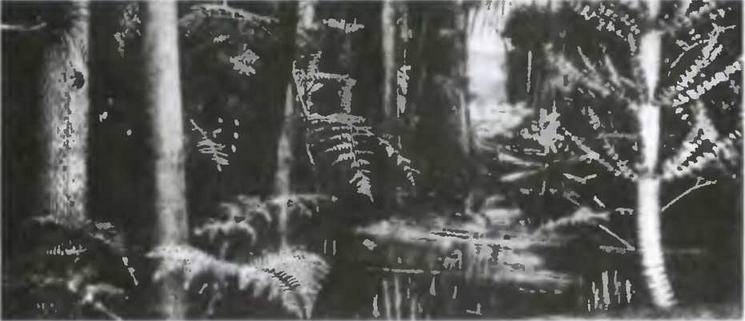 Мне бы не хотелось дальше рассказывать о реконструкциях животных, так как с ними публика худо- бедно знакома. Иное дело — растения. На растительный фон реконструкций зрители обычно не обращают внимания, особенно если ландшафт относится к последним геологическим периодам. Ископаемые растения как бы остаются в тени. Необычные звери, какие-нибудь исполинские или рогатые динозавры поражают взор, но трудно кого-нибудь удивить обликом ископаемого растения. Стоит рядом с динозавром какое-то дерево с перистыми листьями, что-то вроде пальмы. Мало кого заставит ахнуть сообщение, что это вовсе и не пальма, а давно исчезнувшее голосеменное растение с замысловатым названием.