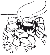 Костер в малолесной местности требует экономии дров и максимально бережного отношения к растительности. В степи для костра делают очаги из дерна, в горах – из камней (рис. 7.5). При укладке очага следует помнить, что можно добиться лучшего горения, если расстояние между боковыми стенками очага с наветренной стороны делать шире, чем с подветренной.