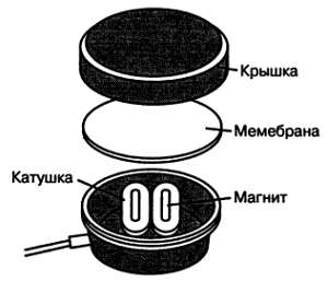 Если вблизи этой катушки оказывается «мина», индуктивность изменяется и также изменяется тон звука. Поисковая катушка представляет собой капсюль от головных телефонов (рис. 13) с удаленной мембраной. Вместо транзистора МП39Б можно установить ГТ108Б.