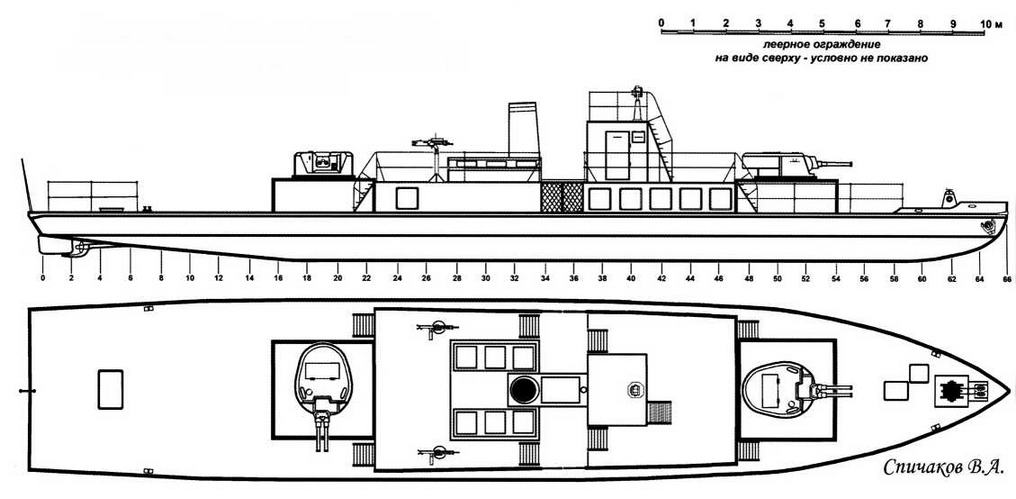 Эскизный проект канонерской лодки переоборудованной из пассажирского катера типа "Опыт" (по схеме АОЦВМА. Ф.2.Д.10255)