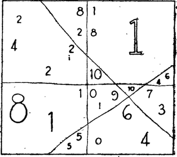 На рисунке показаны 11 частей, на которые 4 прямые делят квадрат, изображенный на рис. 5 в гл. 6,