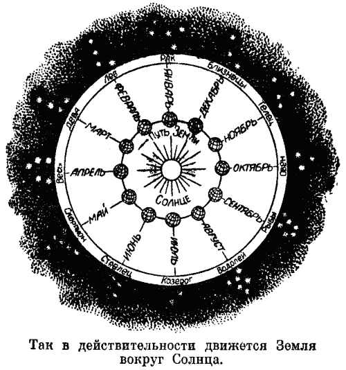 На самом-то деле «обманывают» нас небесные светила: в действительности движется Земля, а нам только кажется, что Солнце в течение года путешествует по двенадцати созвездиям зодиака.