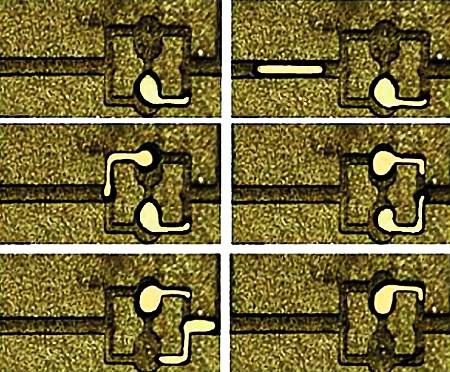 Ученые уверены: гидрокомпьютер, вычисления в котором выполняются с помощью пузырьков, которые движутся по микроканалам, проложенным внутри кремниевого кристалла, вполне реален. Дело в том, что направлением движения газового пузырька в канале довольно просто управлять с помощью других пузырьков. Когда пузырек достигает развилки, он всегда поворачивает туда, где меньше сопротивление потоку жидкости. Присутствие же самого пузырька в канале значительно увеличивает сопротивление, и, если есть возможность выбора, следующий пузырек за ним не пойдет.
