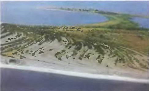 Южная низменная часть острова Осмусссар с береговыми валами, (Фото с самолета А. Никонова, 1998)