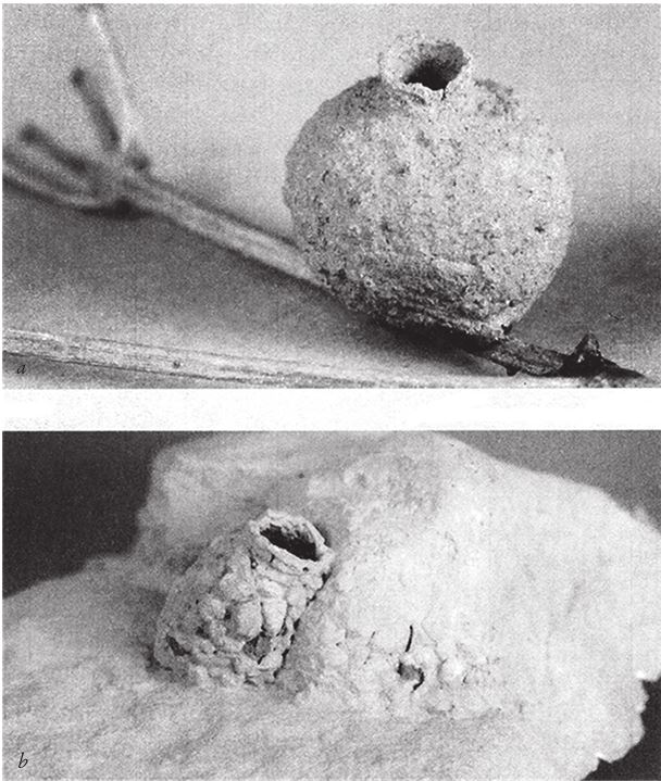 Рис. 1.6. “Керамика” насекомых-“гончаров”: осы-отшельницы (а) и одинокой пчелы (b).
