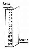 Л. — Некоторые из этих схем достаточно сложны. Мы рассмотрим только одну так называемую счетную декаду, представляющую собой электронную схему, которая по получении десяти импульсов всегда возвращается в первоначальное состояние. По получении десятого импульса она дает в канал, именуемый выходом, импульс, приводящий в действие следующую декаду.