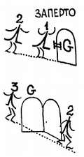 Л. — Нет. Незнайкин, ты, кажется, забыл о наличии резистора R и конденсатора С. Они несколько задержат повышение потенциала точки D. Но этого будет достаточно, чтобы вызвавший опрокидывание триггера В2 импульс пришел к еще запертому ключу G и не смог через него пройти. А вот второй поступающий в точку В импульс спокойно пройдет через ключ G.