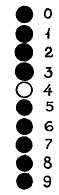 Н. — Очень занятно. Чередование состояний твоих пяти триггеров мне что-то напоминает, но я никак не могу вспомнить, что именно… Ах! Так ведь это похоже на обозначение различных цифр в азбуке Морзе. Там тоже используется пять знаков с постепенным увеличением числа точек: цифре 1 соответствует одна точка (точка и четыре тире), цифре 2 соответствуют две точки (две точки и три тире), а цифре 5 — пять точек. После этого увеличивается количество тире от одного, обозначающего цифру 6 (тире и четыре точки), до четырех, обозначающих цифру 9 (четыре тире и одна точка).