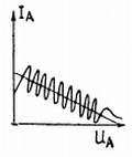 Рис. 122. В электронно-лучевой трубке с ламинарным лучом электронный луч по пути к аноду проходит через маску с отверстиями. Анод соединен с отклоняющей пластиной, что придает характеристике анодного тока в зависимости от анодного напряжения форму ломаной линии, что при питании анода через соответствующий резистор позволяет получить для электронного луча десять устойчивых положений. Воздействуя на другую отклоняющую пластину сигналами с крутым фронтом и пологим срезом, можно заставить луч переходить с одного устойчивого положения на следующее.