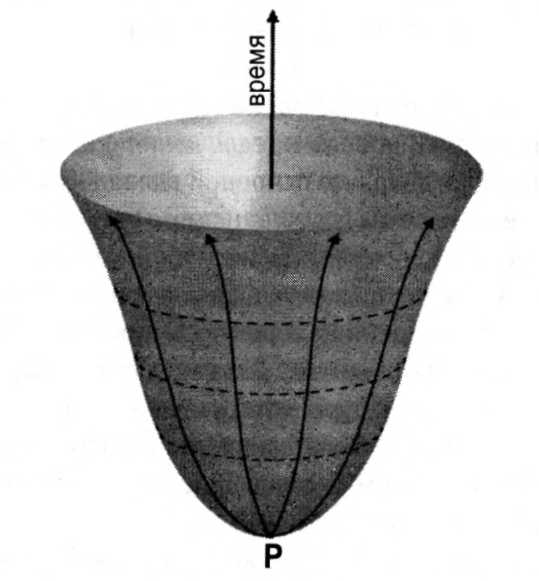 Рис. 17.4. Двумерное пространство-время без границ в прошлом.