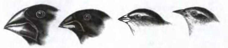 Дарвин обнаружил, что вьюрки Галапагосского архипелага имеют четко различающиеся формы клюва в зависимости от источников пищи доступных на данном острове