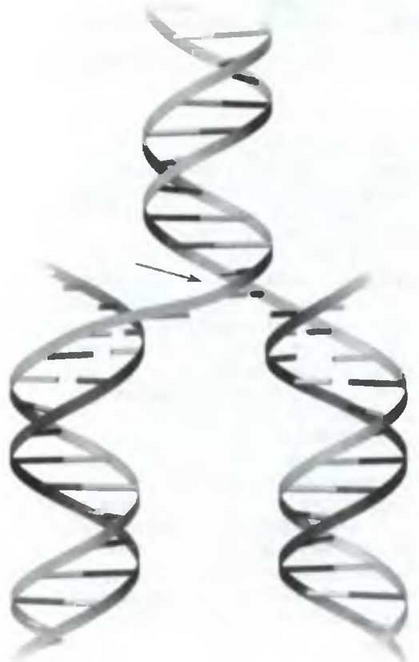Знаменитая двойная спираль - молекула ДНК. Одиночная нить ДНК образуется во время клеточного деления, когда происходит удвоение молекулы